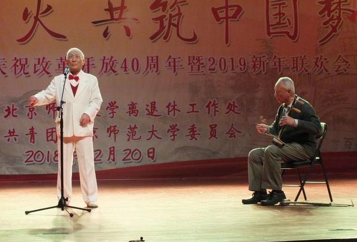 12月20日,yl8cc永利官网离退休教师参加了由校离退休工作处主办、校团委协办的“木铎传薪火 共筑中国梦——yl8cc永利官网离退休老同志庆祝改革开放40周年暨2019新年联欢会”。当日上午,全校各单位共有700多离退休老同志在北师大学生活动中心欢聚一堂,共赏精彩节目,喜迎新年。 我校党委副书记李晓兵出席联欢会并致辞。他在致辞中表示,学校党委在新的一年里将一如既往地做好本职工作,生活上照顾、精神上关怀老同志,进一步形成尊重老同志、爱护老同志的良好氛围,为离退休老同志们美好的晚年生活做出最大的努力。他鼓励老同志们在新的一年里不忘初心、牢记使命,希望老同志们继续关心和支持学校的发展,为创造和实现北师大人的梦想贡献出智慧和力量。 联欢会在各院系部领导发来的祝福视频中拉开了序幕。舞台上,节目形式多样,精彩纷呈;舞台下,老同志们掌声不断,笑逐颜开。yl8cc永利官网离退休教师积极参与了许多节目的准备、演出,彰显出离退休教师老有所学、老有所为、老有所乐的价值追求。 yl8cc永利官网罗靖老师为京剧《淮河营》(选段)伴奏 yl8cc永利官网易敏老师参加《天路》和《波罗维茨之歌》合唱 yl8cc永利官网陈珊老师参加《梨花情》民族舞蹈演出 yl8cc永利官网郭彦勤老师参加《不忘初心》合唱