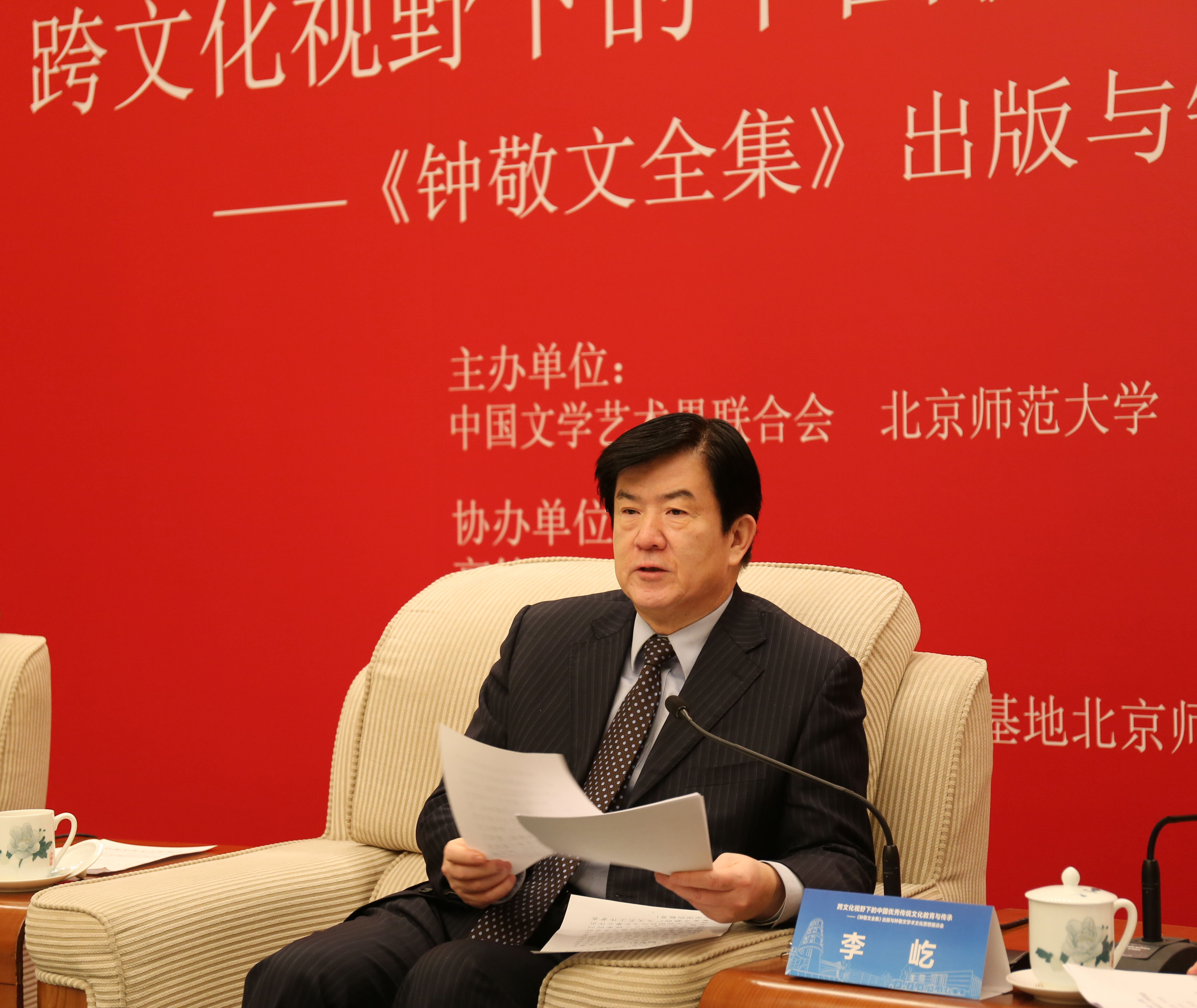 《钟敬文全集》出版与钟敬文学术文化思想座谈会全体与会嘉宾合影(大北照相馆摄) 《钟敬文全集》书影(李美仙摄) 当代中国在经济发展、综合社会治理和自然环境改善等方面都取得了快速发展,而悠久的中国历史文明始终是中国发展的基础。改革开放40年来,我国出版了一批学术大师的著作,引起国际关注,近期出版的“中国民俗学之父”钟敬文先生的著作全编《钟敬文全集》是其中的一种,共16卷,30册,1000余万字,由yl8cc永利官网钟敬文先生四代弟子与多学科著名学者47人次编纂,与高等教育出版社通力合作,历时8年完成,由高等教育出版社于2018年11月出版。该著是中宣部出版局国家重点图书项目,在yl8cc永利官网985工程基础上进行,在教育部人文社科重点研究基地十三五重大规划项目中拓展,全面反映了钟敬文先生在民俗学、传统国学和国际交流等多领域取得的广泛学术成就和重大历史贡献,展现了中国优秀传统文化的人文精神,是学术大师著作中少数拥有“中国学派”地位的巨著,对于我国在全球化激烈竞争中,既要放眼世界,又要坚持民族文化主体性,具有鲜明的导向作用。对于中国优秀传统文化向世界提供共享经验,也具有丰富的启示性。2019年1月19日,在人民大会堂召开“跨文化视野下的中国优秀传统文化教育与传承暨《钟敬文全集》出版与钟敬文学术文化思想座谈会”,隆重纪念钟敬文先生,同时就《钟敬文全集》的出版成就进行研讨。本次大会由中国文联、yl8cc永利官网和中国民间文艺家协会联合主办,由高等教育出版社、yl8cc永利官网、教育部人文社科重点研究基地北师大民俗典籍文字研究中心、yl8cc永利官网跨文化研究院和敦和基金会联合协办。中共中央宣传部出版局领导莅临会议并指导。中国文联党组书记、副主席李屹,中国文联副主席、书记处书记陈建文,中宣部出版局副局长许正明,中国民间文艺家协会分党组书记、驻会副主席邱运华,中国文联副主席、中国民间文艺家协会主席潘鲁生,yl8cc永利官网副校长郝芳华,高等教育出版社党委书记、社长苏雨恒等出席大会并讲话。中国文联副主席、书记处书记陈建文先生主持大会。 中国文联副主席、书记处书记陈建文先生主持大会(曹文瀚摄) 陈建文书记宣布大会开始,并在简短的致辞中,概括了“中国民俗学之父”钟敬文先生的生平业绩和《钟敬文全集》出版对于弘扬中国优秀传统文化的重大价值。他说,2018年与2019年之交《钟敬文全集》首次出版,这是文化领域的一件大事,一件喜事。钟敬文先生参加过五四运动,曾留学日本早稻田大学,回国后投身中国人民抗日战争争取国家独立和民族解放的伟大事业,同时在高校执教,并在新中国成立后至改革开放时期走过社会主义新文化建设和我国高等教育事业发展的全程,他是20世纪中国杰出的爱国知识分子,是成就卓越的中国民俗学家、民间文艺学家、文艺理论家、诗人、散文家、作家和社会活动家,在国际上也有重大影响。钟先生也是为数寥寥地受到毛泽东、邓小平、江泽民等几代国家领导人接见过的高校学者,学问领域涉及民俗学、民间文艺学、传统国学、文艺学、社会学、人类学、民族学、历史学、古典文学、现代文学、诗词格律学、新闻学、比较文学与世界文学等多个领域,是当之无愧的文化巨匠。《钟敬文全集》全面展示了钟先生的重大成就,具有不可估量的学术价值、社会现实意义和未来传承意义。 中国文联党组书记、副主席李屹先生讲话(曹文瀚摄) 中国文联党组书记、副主席李屹先生首先讲话。他全面而深入地阐述了钟先生在20世纪中国文化史、学术史、教育史和现代社会史中的重大贡献,指出,在《钟敬文全集》出版之际,纪念这位世纪巨匠,就是要学习他始终坚定理想信念、心系国家与民族的价值追求,坚定文化自信、坚守中华文化立场的艺术理念,坚持深入生活、博观约取的治学风格,以及虚怀若谷、甘为人梯的崇高风范。改革开放40年的今天,中国特色社会主义迈入了新时代,社会主义文艺事业也站在了新的历史起点上。今年将迎来新中国成立70周年,在这继往开来的伟大历史时刻,文艺不能缺席,文艺工作者更不能缺席。中国民间文艺家协会正在实施中国民间文学大系出版工程等国家重点文化项目。希望广大民间文艺工作者秉承钟敬文先生留下的重要理论成果和实践原则,恪守严谨治学精神,不忘初心、担当作为,努力为中华民族留存珍贵鲜活的文化记忆,为繁荣发展社会主义文艺事业作出新的更大贡献。 中宣部出版局许正明副局长(曹文瀚摄) 《钟敬文全集》是中宣部出版局立项的国家重点图书项目,中宣部出版局副局长许正明出席会议并讲话。他高度评价民俗文化和民间文化艺术在优秀传统文化中的地位,指出,我国民俗文化和民间文化艺术源远流长、博大精深,植根于深厚博大的中华传统文化沃土,是中华传统文化的重要组成部分,也是中华文明的重要承载和体现。习近平总书记提出,中华优秀传统文化是中华民族的突出优势,是中华优秀传统文化的重要符号和独特标识。中华民俗伟大复兴需要以中华文化繁荣发展为条件,必须结合新的时代条件,传承和弘扬好中华传统优秀文化。《钟敬文全集》的出版,是贯彻落实习近平新时代中国特色社会主义思想的重要举措,是传承弘扬中华优秀传统文化的重要成果,主要有