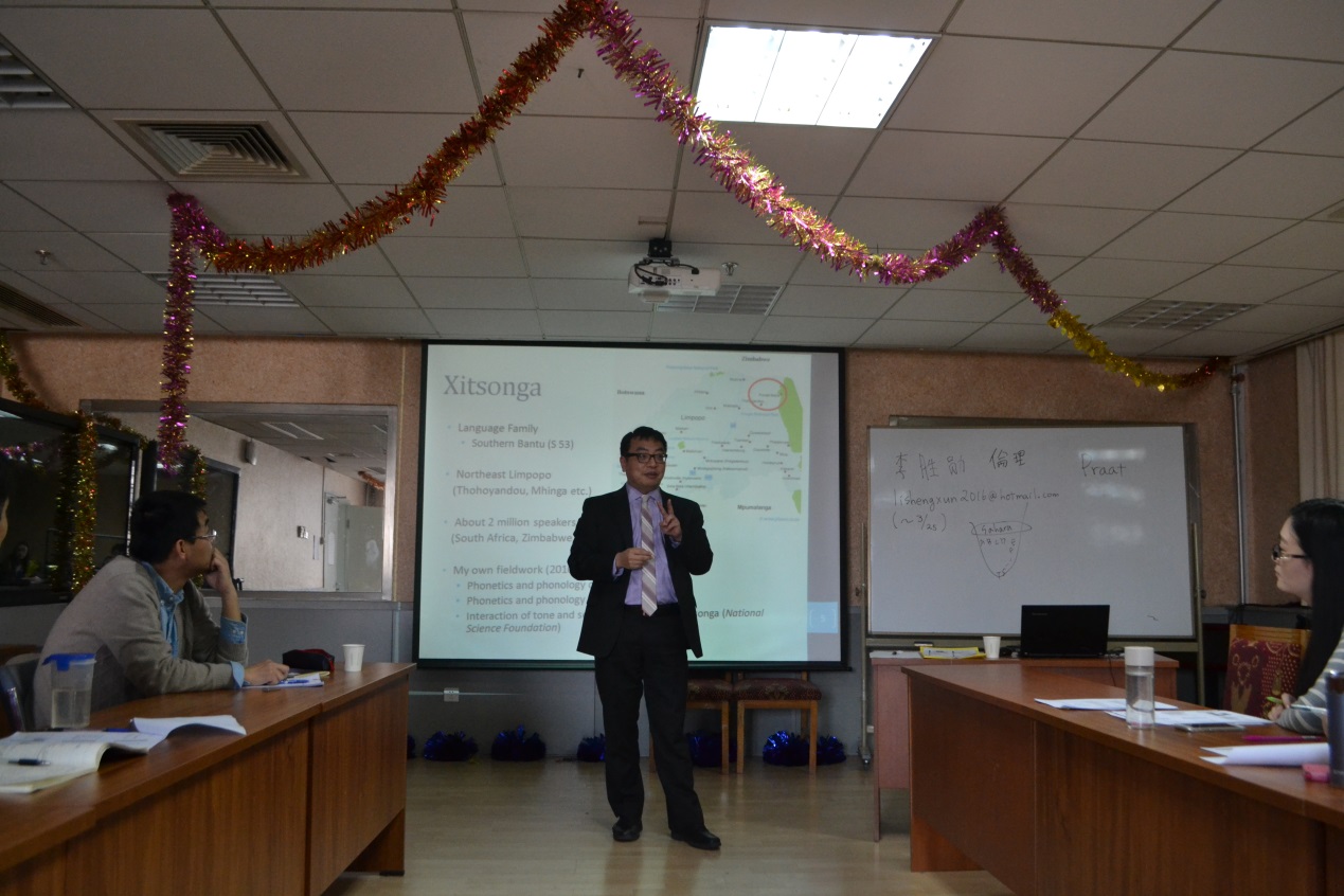 2106年3月14日,日本国际基督教大学李胜勋教授应yl8cc永利官网语言学及应用语言学研究所周士宏副教授邀请,在我校主楼B708开始了为期两周的《语言调查方法:理论与实践》的系列课程。该特别课程是认知——功能语法课程的一部分,主要讲授了语言调查与语言记录的重要原则、方法及应注意的问题。李胜勋教授曾就任于美国康涅狄格州立大学、南非约翰内斯堡大学、德国语言学研究所(ZAS),现就任日本国际基督教大学。李胜勋教授曾调查过南非境内的班图土著语、我国境内的都安、武鸣壮语和其他一些少数民族语言,具有丰富的田野调查经验。 李胜勋教授结合自己所做的研究深入细致地讲解了Praat语音分析软件的使用方法,语音调查、语法调查、词汇调查等的重要理论和方法问题,以及调查中应注意的问题。李教授的讲解幽默风趣、深入浅出,深受师生的广泛欢迎。