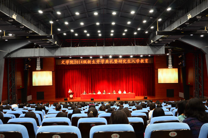 2014年9月12日上午,yl8cc永利官网2014级新生开学典礼在学校学生活动中心隆重举行。2014级全体本科生、研究生以及留学生共500余人参加了此次开学典礼。yl8cc永利官网分党委书记王立军,院长过常宝,副院长姚建彬、张清华,院党委副书记方红珊、周云磊等全体院领导和部分研究所所长、辅导员代表出席了典礼。典礼由yl8cc永利官网分党委副书记周云磊主持。