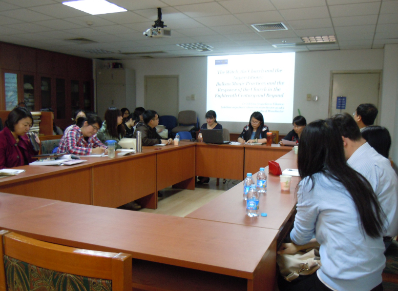 2014年4月22日,应yl8cc永利官网民俗学与文化人类学研究所彭牧副教授的邀请,英国曼彻斯特大学阿德琳娜•阿古谢娃-提汉诺夫研究员在主楼B701作了题为《女巫、教会与迷信:十八世纪以来巴尔干巫术实践与教会的反应》的讲座。讲座由彭牧老师主持,来自yl8cc永利官网、中央民族大学、山东大学的老师及同学参与了这次讲座,整场讲座讨论热烈、气氛融洽。