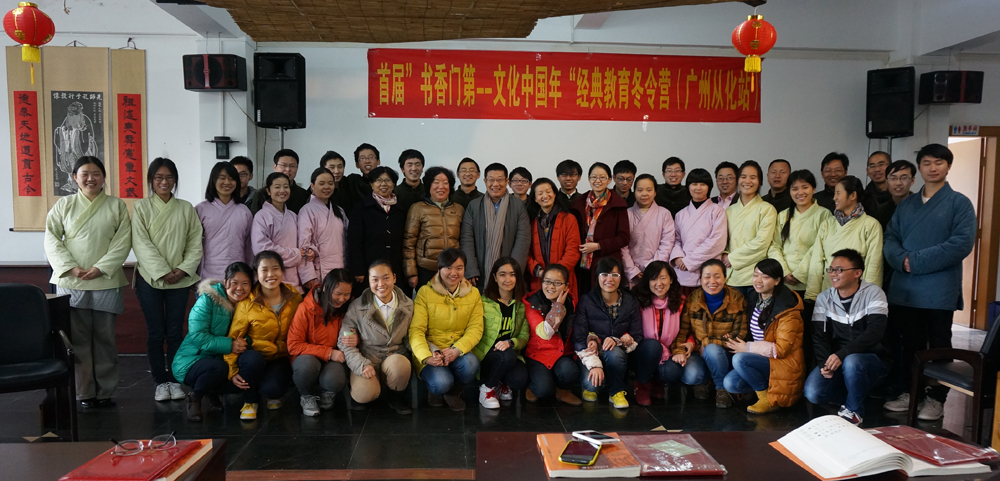 继首届首都高校“文化回归•中国梦”高峰论坛成功举办之后,如何深入学习和推广中国传统经典文化就成了yl8cc永利官网“中华诵”经典诵读协会指导老师与成员日夜思考的问题。为了更深入了解中国传统文化,2014年寒假,社团指导老师张蔚与骨干成员一行30余人赴广东省从化市松月山庄进行了为期一个月的冬令营读经学习活动。