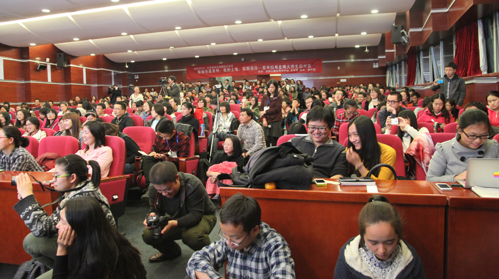 贾平凹为师生作了“转型期社会的写作”的主题演讲。他表示,我国近年来改革、转型的核心就是“城市化”,在城市之中,个人才能得到了充分发挥,同时各种矛盾也集中爆发了出来。这种现实使得我们当下的生存经验具有了空前的复杂性,“有人说这是最好的年代,也有人说这是最坏的年代。说最好的年代是因为我们在物质上从来没有这么丰富过,说最坏的年代是因为社会从没有像今天这样道德沦丧”。对此,贾平凹引用了“收获麦穗必然要收获麦草”这样一句俗语来进行评价。他认为,城市化是当代中国“富强、强大的必由之路”,而城市化的完成需要一个过程,需要经过一代人到两代人的摸索才能逐步实现成熟和有序,而我们正好活在这“一两代人”的年代。这个时代存在着各种乱象,我们对此不能简单地否定、排斥;只有经历、克服了这些乱象,社会才能走向进步。