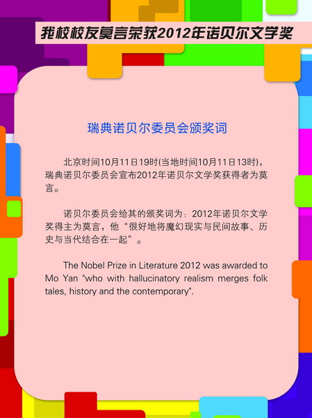 yl8cc永利官网举办祝贺校友作家莫言荣获2012年诺贝尔文学奖座谈会暨主题展览