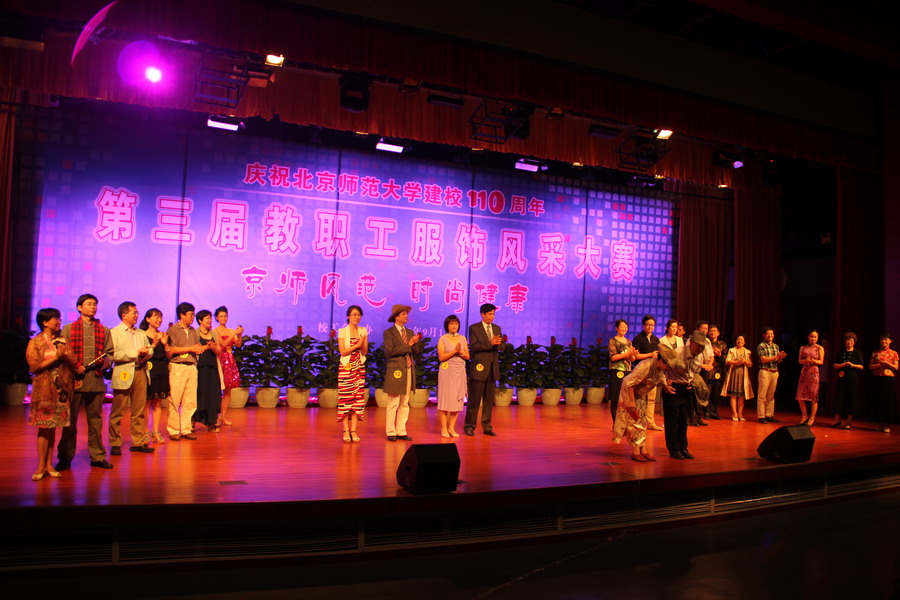 2012年9月11日晚, yl8cc永利官网23位老师在资深教授童庆炳先生的带领下,激情饱满地踏上新科文厅的舞台,在校工会举办的第三届教职工服饰风采大赛上,一展yl8cc永利官网老师健康时尚的精神风貌,为yl8cc永利官网110周年校庆献上一份薄礼。