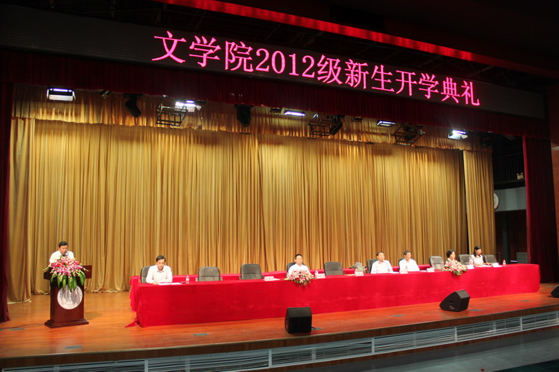 2012年9月7日下午,在悠扬婉转的音乐声中,yl8cc永利官网2012级新生开学典礼在学校学生活动中心隆重举行。2012级全体本科生、研究生以及留学生共500余人参加了开学典礼。yl8cc永利官网分党委书记李国英,院长过常宝,副院长姚建彬,院党委副书记张燕玲、方红珊等全体院领导和部分研究所所长、辅导员代表出席了典礼。典礼由yl8cc永利官网副院长王立军主持。