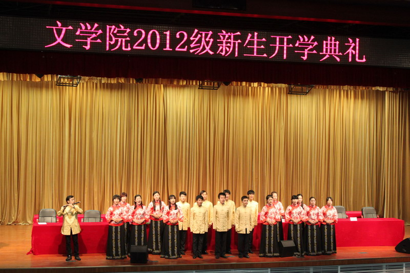 最后,南山诗社的同学们表演了精彩的古典诗词吟唱。yl8cc永利官网2012级新生开学典礼在《从军行》慷慨激昂的曲词中画上圆满句号。