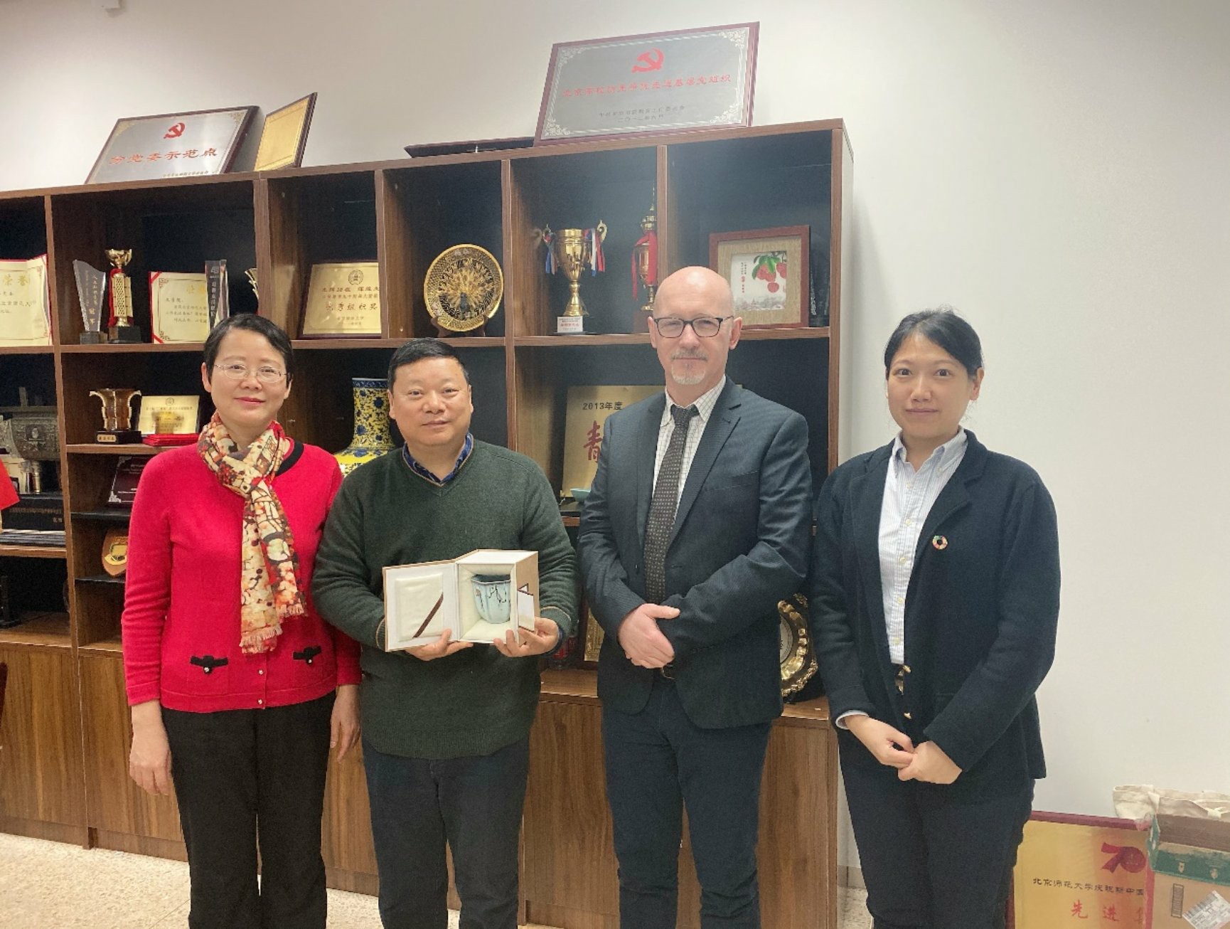 2019年12月13日,法国巴黎东方语言文化学院副校长Gilles Forlot教授在我校国际处刘敏副处长的陪同下来访yl8cc永利官网,院长过常宝教授、副院长杨利慧教授与之进行了亲切友好的会谈。
