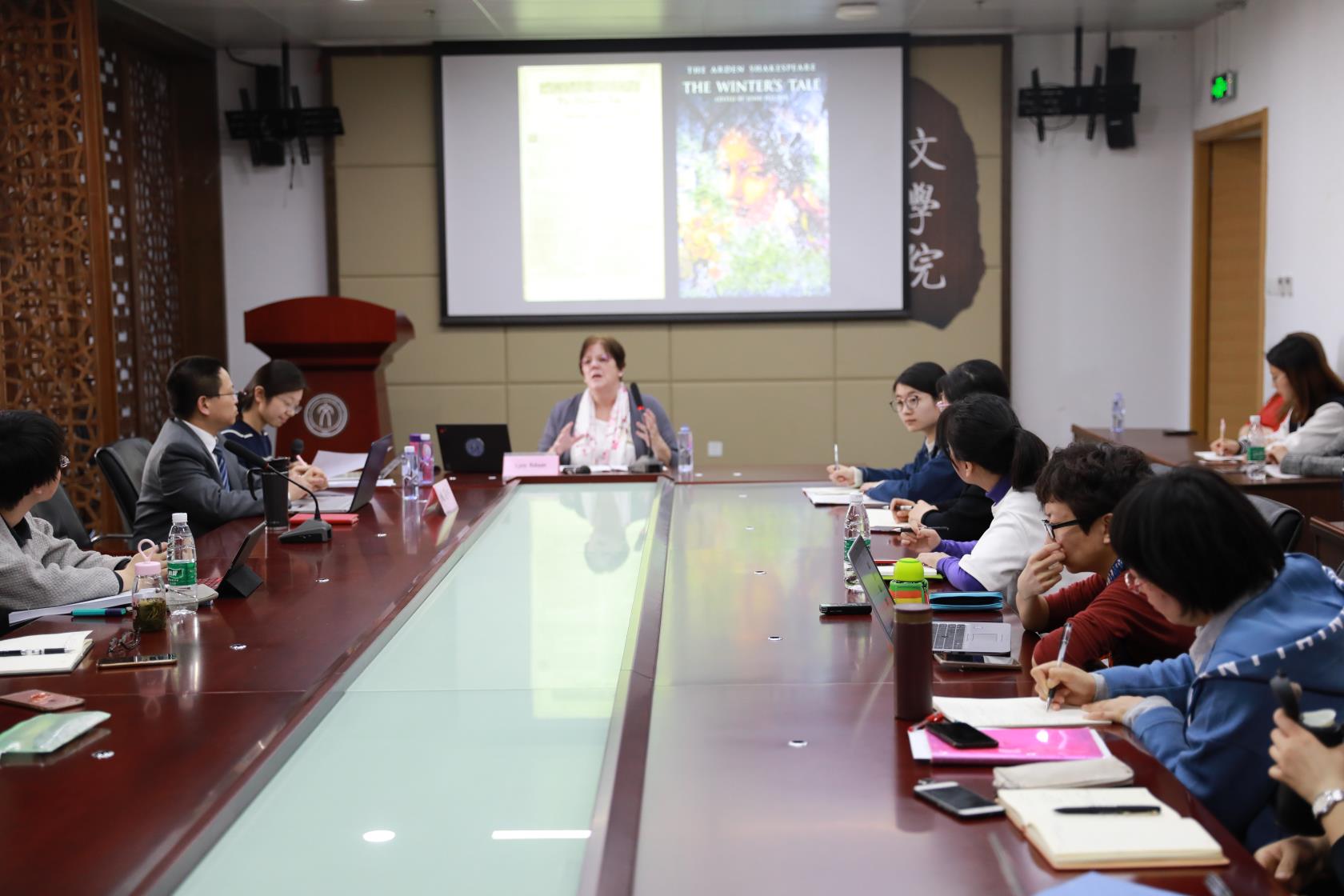 3月25日,牛津大学摄政学院英国文学教授Lynn Robson博士来访yl8cc永利官网,并在C5049会议室做了题为《莎士比亚跨越时空的旅行》的主题讲座。讲座由姚建彬教授主持,yl8cc永利官网比较文学和世界文学、现当代文学和相关专业的师生,共计50余人,参加了听讲。