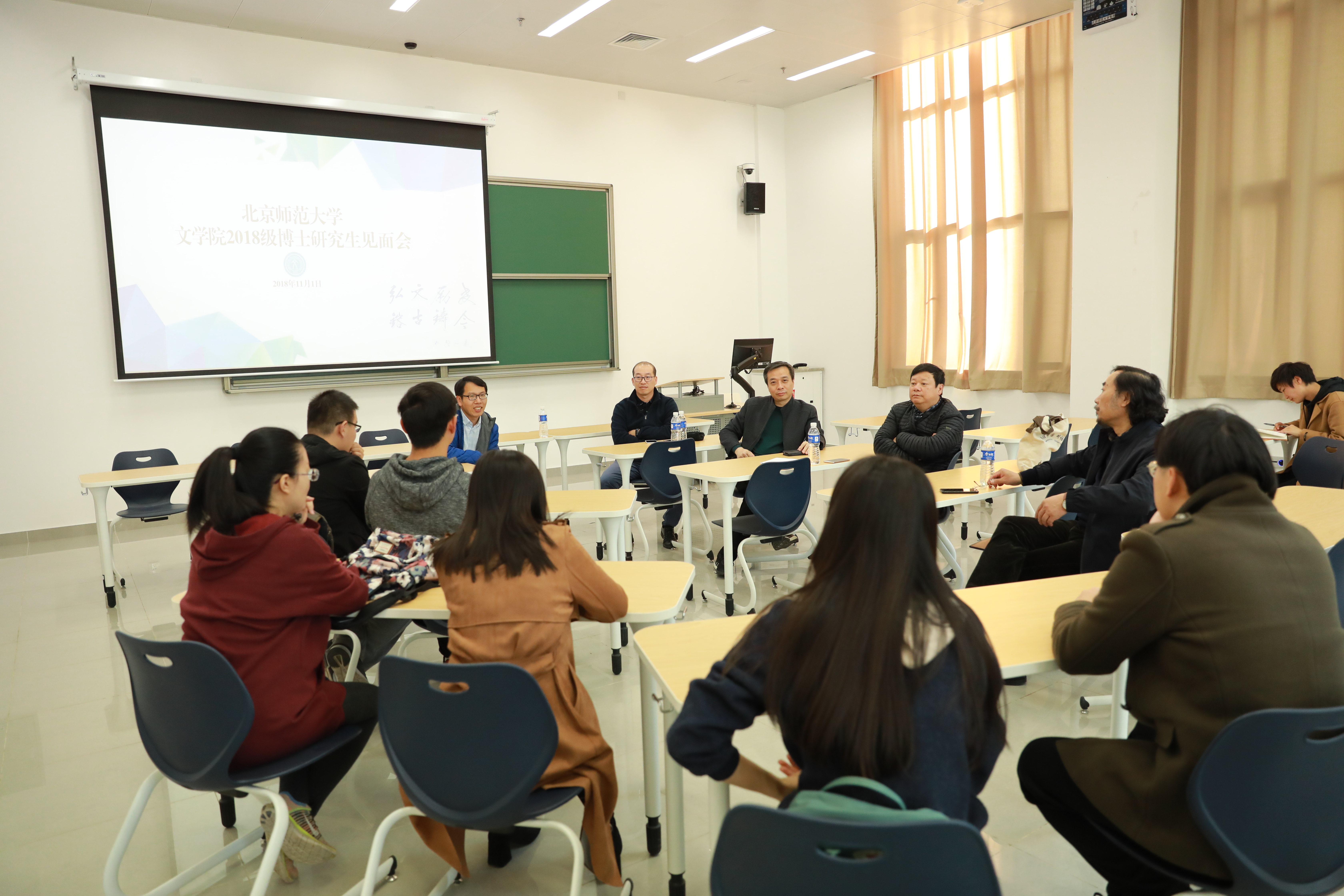 11月1日,yl8cc永利官网党委书记康震教授和院长过常宝教授等一行前往北师大昌平校区,举行了与yl8cc永利官网2018级博士研究生专题见面会。