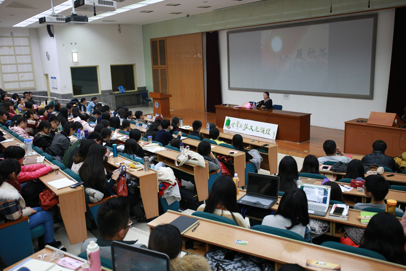 2014年12月9日晚7时,由yl8cc永利官网国际写作中心、yl8cc永利官网学生会联合主办的“金声玉振文化论坛之严歌苓专场:写作的空间穿越”主题讲座在yl8cc永利官网教九502举行。yl8cc永利官网国际写作中心执行主任张清华教授特邀为嘉宾主持,国际写作中心副主任梁振华出席本次讲座。此外,师大百名学子也积极参与了此次对谈。